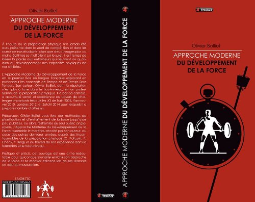 Olivier BOLLIET Approche moderne du développement de la force pdf - L'Approche Moderne du Développement de la Force est le premier livre en langue française explorant en profondeur les concepts de Tempo et de Temps Sous Tension. Précurseur, Olivier Bolliet vous livre des méthodes de planification et d'entraînement de la force jusqu'alors peu publiées, ou alors, restreintes au seul public anglo-saxon. L'Approche Moderne du Développement de la Force rassemble le matériau récolté par son auteur, au cours des quinze dernières années, auprès des incontournables de la préparation physique (C. Poliquin, P. Check, Y. King) et au travers de son expérience dans la formation et le haut-niveau. Pratique et précis, cet ouvrage est une arme redoutable pour quiconque souhaite enrichir son approche de la force et se montrer efficace lors de ses séances en salle de musculation. 90 pages - Format pocheRang parmi les ventes Amazon: #147147 dans LivresPublié le: 2013-12-10Langue d'origine: FrançaisDimensions: 4.33" h x .16" l x 7.09" L, Reliure: Poche86 pagesPrésentation de l'éditeurL'Approche Moderne du Développement de la Force est le premier livre en langue française explorant en profondeur les concepts de Tempo et de Temps Sous Tension. Précurseur, Olivier Bolliet vous livre des méthodes de planification et d'entraînement de la force jusqu'alors peu publiées, ou alors, restreintes au seul public anglo-saxon. L'Approche Moderne du Développement de la Force rassemble le matériau récolté par son auteur, au cours des quinze dernières années, auprès des incontournables de la préparation physique (C. Poliquin, P. Check, Y. King) et au travers de son expérience dans la formation et le haut-niveau. Pratique et précis, cet ouvrage est une arme redoutable pour quiconque souhaite enrichir son approche de la force et se montrer efficace lors de ses séances en salle de musculation. 90 pages - Format pocheVous trouverez ci-dessous les commentaires du lecteur après avoir lu Approche moderne du développement de la force. Vous pouvez considérer pour votre référence.